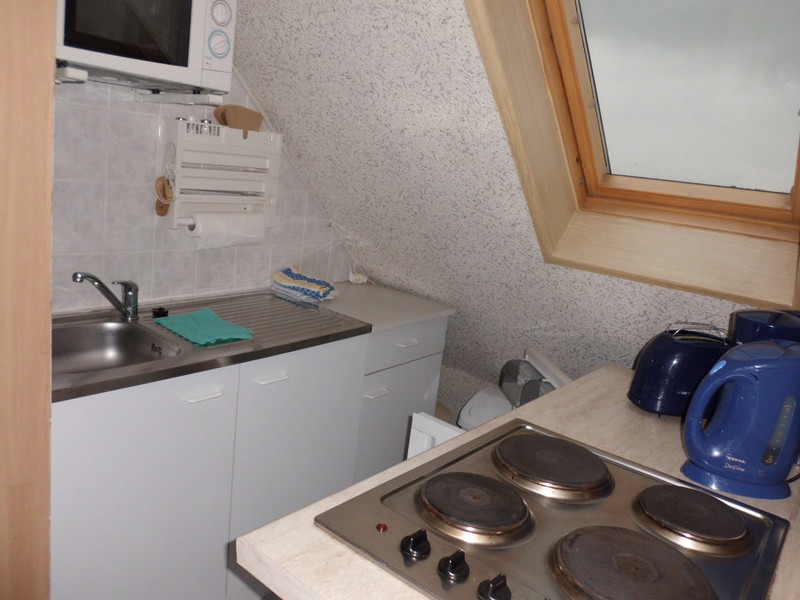 Küche: Miniküche mit Kochgelegenheit, Kühlschrank, Abwäsche,
